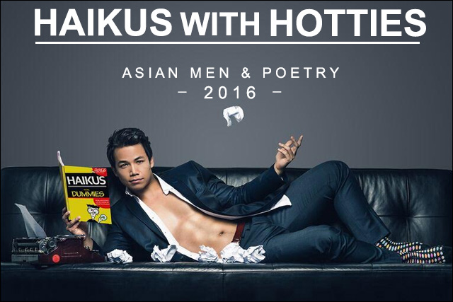 Fans of hot Asian men! This one's for you. A few months ago, I posted about a Very Important Kickstarter campaign: the 2016 Haikus With Hotties Calendar project based on Audrey Magazine's non-award-winning poetry series "Haikus With Hotties," in which they asked hot Asian American men to exchange poetry with them.